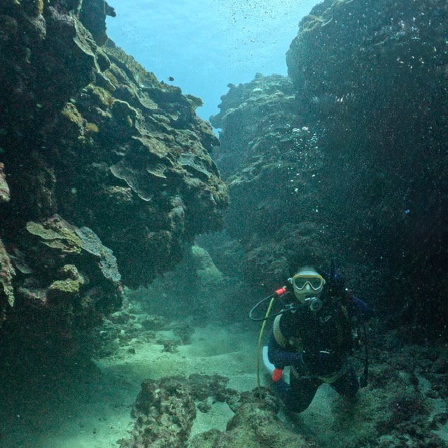 ゴツゴツ地形派ダイバーのゲスト様は1本目から宜野湾の地形ポイントへ。